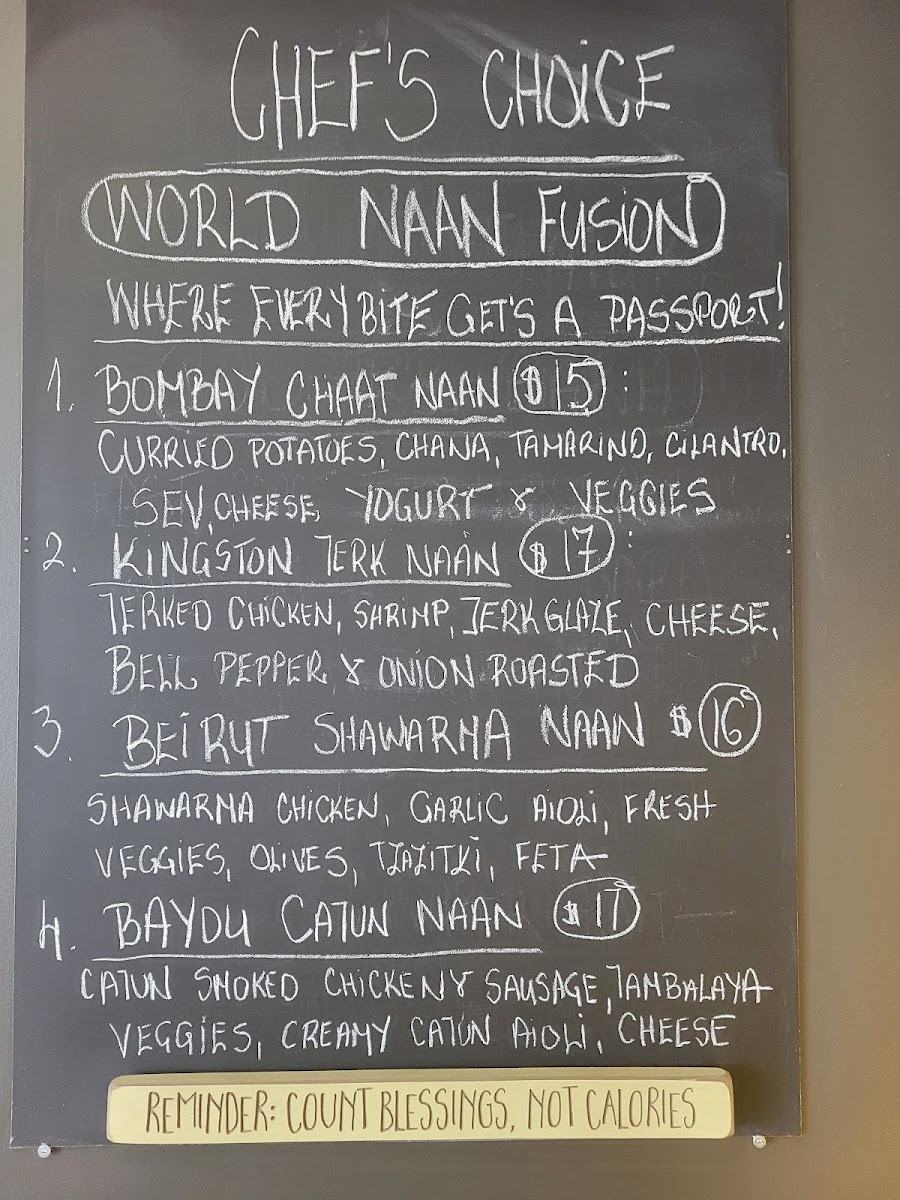Freshly grilled roti, filled with a flavorful medley of vegetables, chickpeas & potatoes. Add protien: Curried chicken or beef on a bed of Chana.